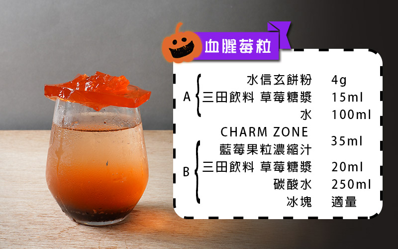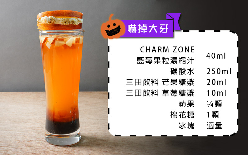 最應景的萬聖節外觀,由三種風味交織而成的氣泡飲,喝一口,美味三重奏將在你的舌尖上演出!